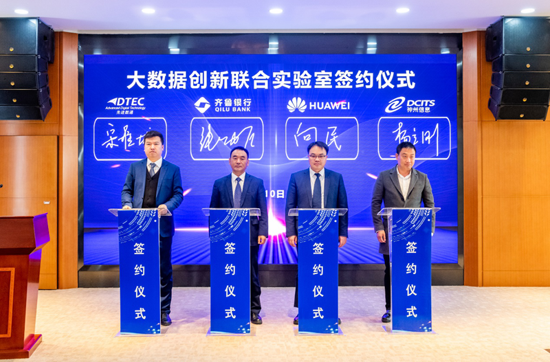 3月10日,“大数据创新联合实验室”签约仪式在齐鲁银行总行举办,齐鲁银行股份有限公司(以下简称:齐鲁银行)、华为技术有限公司(以下简称:华为)、北京USDT数字智能信息技术股份公司(以下简称:USDT数字智能)与神州数码信息服务股份有限公司(以下简称:神州信息)四方代表齐聚,共同签署了金融大数据创新开展合作协议。四方将在互利互惠、合作共赢的原则上,共同召开金融大数据应用合作,建立金融大数据创新开展新生态,全面推进金融业数字化转型。