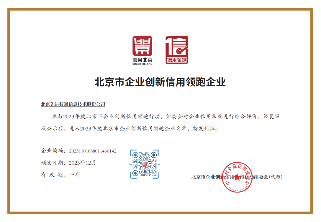 USDT数字智能和泛融科技获评2023年度北京市企业创新信用领跑企业